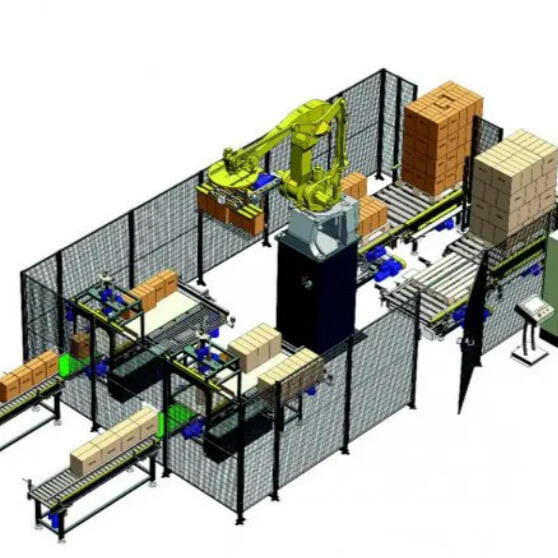 Solución enfocada a procesos de despaletizado de cajas en líneas de entrada. Admite visión 3D, garra inteligente y lógica de orientación para flujos de alimentación robotizada.