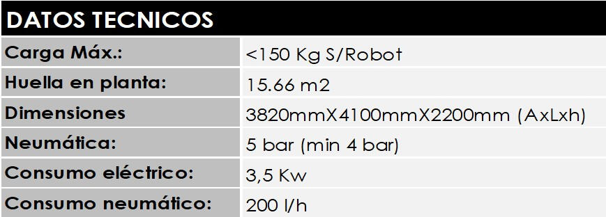 Con visión base incluida y garra ventosa. Integración a medida según necesidades. Incluye software base de gestión, célula modular y conexión a ERP opcional.