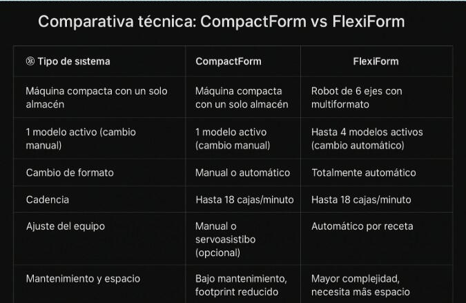 Ideal para líneas de producción simples con un único tipo de caja además de para líneas con varios modelos de caja en series largas, donde los cambios de formato no son frecuentes y se prioriza la fiabilidad con un diseño compacto.