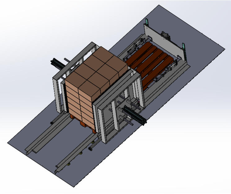 Sistema automático para cambiar mercancía de un pallet a otro (por ejemplo, de pallet europeo a americano o viceversa), sin necesidad de elevación manual ni desmontaje de la carga.