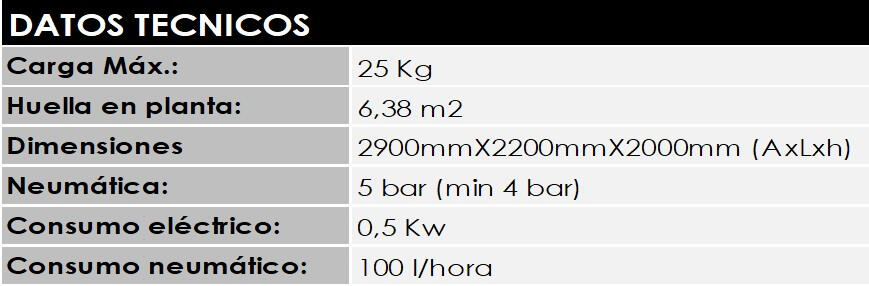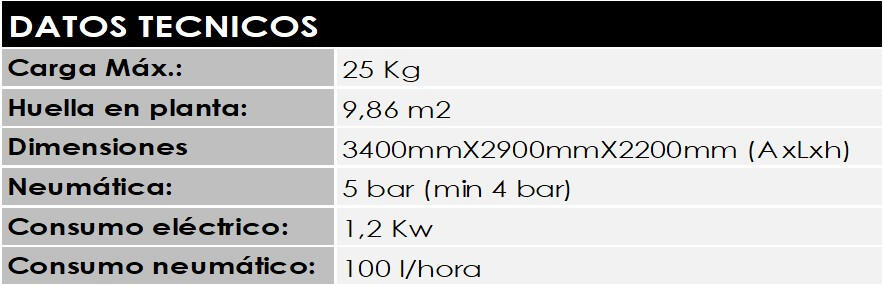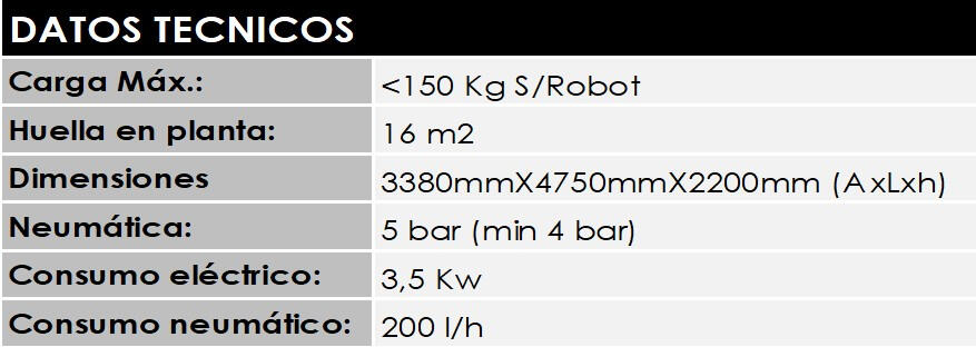 Con visión base incluida y garra ventosa. Integración a medida según necesidades. Incluye software base de gestión, célula modular y conexión a ERP opcional.